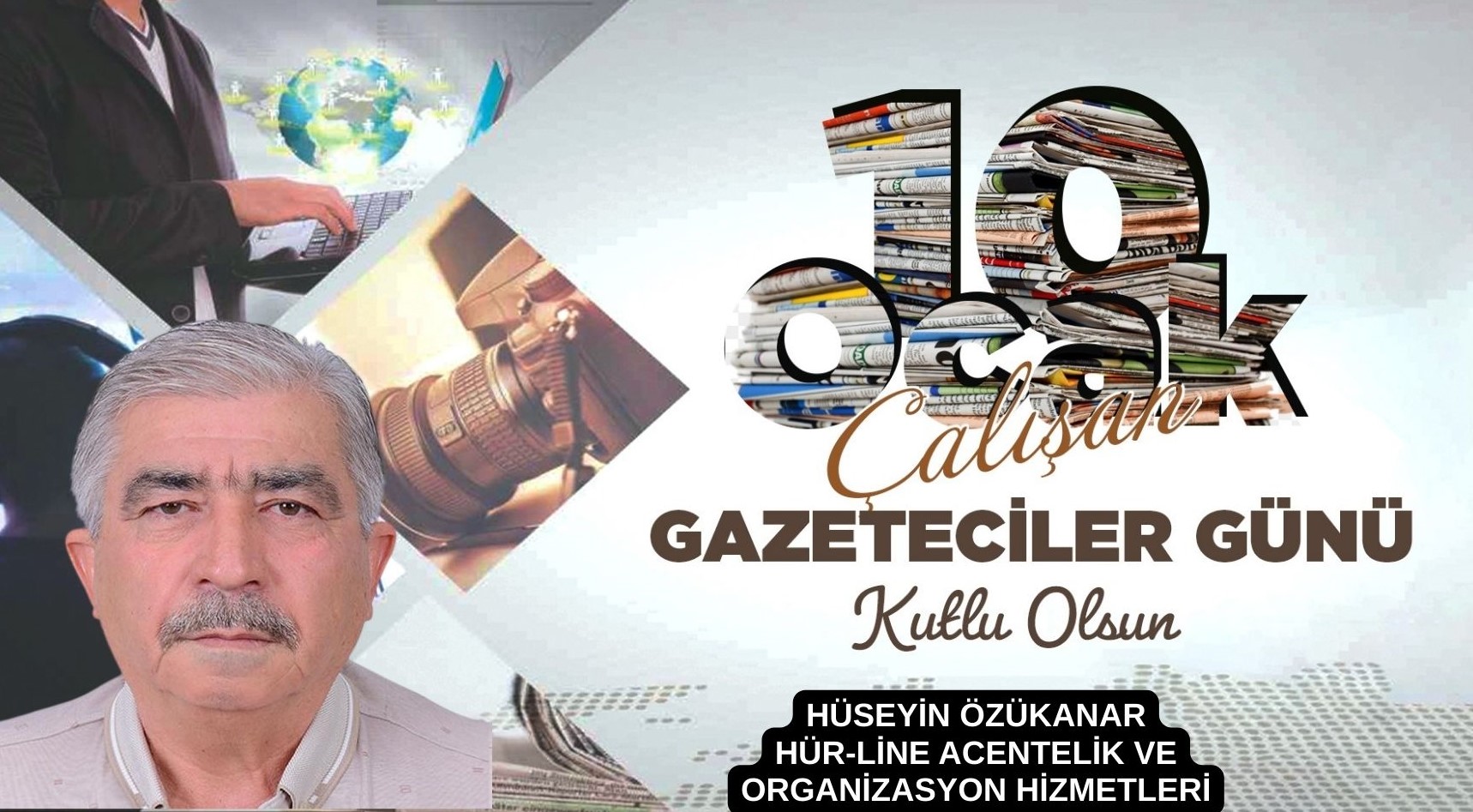 HÜR-LİNE Acentelik ve Organizasyon Hizmetleri Sahibi ve İş İnsanı Hüseyin Özükanar 10 Ocak 1961 yılında kabul edilmesiyle birlikte, her yıl 10 Ocak tarihi “Çalışan Gazeteciler Günü” olarak kutlanmaktadır. Özükanar Bilginin her geçen gün katlanarak çoğaldığı ve teknolojinin takip edilmesi zor bir hızda geliştiği günümüz dünyasında, medya hayati bir önem taşımaktadır. Görsel ve yazılı medyanın yanında sosyal medya olarak nitelenen anlık haberleşme ve bilgi paylaşım ağlarının etkinliğinin günden güne arttığı günümüzde, gazetecilerimizin üzerine düşen sorumluluk her zamankinden daha fazladır. Milletimizin gözü, kulağı ve dili olan, vatandaşlarımızın haber alma ve bilgi edinme ihtiyacının doğru biçimde karşılanmasına vesile olan gazetecilerimiz, şüphesiz ülkemizin demokratikleşme sürecine büyük katkı sunmaktadırlar. Zor şart ve imkânlar içerisinde, milletimizi ülke ve dünya gündeminden haberdar eden gazetecilerimiz, yerli ve milli değerlerimizin benimsetilmesinde de çok önemli bir görevi üstlenmektedirler. Bu vesileyle; bu çok önemli işe emek ve gönül veren tüm basın mensuplarımıza sağlık, mutluluk ve başarılarla dolu bir meslek yaşamı diliyor, ebediyete intikal eden değerli basın mensuplarını rahmetle anıyor, 10 Ocak Çalışan Gazeteciler Günü’nüzü kutluyor, en içten sevgi ve saygılarımı sunuyorum.