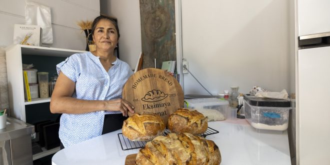 Mersin’de kadın girişimciler, Büyükşehir Belediyesi’nin sağladığı desteklerle üretimlerini büyütmeye ve kendi markalarını oluşturup tanıtmaya devam ediyor. Doğal ekşi maya ekmek üretimi yapan Zübeyde Şahin de bu kadınlardan biri. Yaklaşık 5 yıl önce evinin mutfağında başladığı yolculuğunu, bahçesine kurduğu atölyesinde sürdüren Şahin, tamamen doğal ve katkısız unlarla ekşi mayalı ekmekler üretiyor. Üretimini ev tipi taş tabanlı elektrikli fırında gerçekleştiren girişimci, kazancıyla atölyesini adım adım geliştiriyor.
