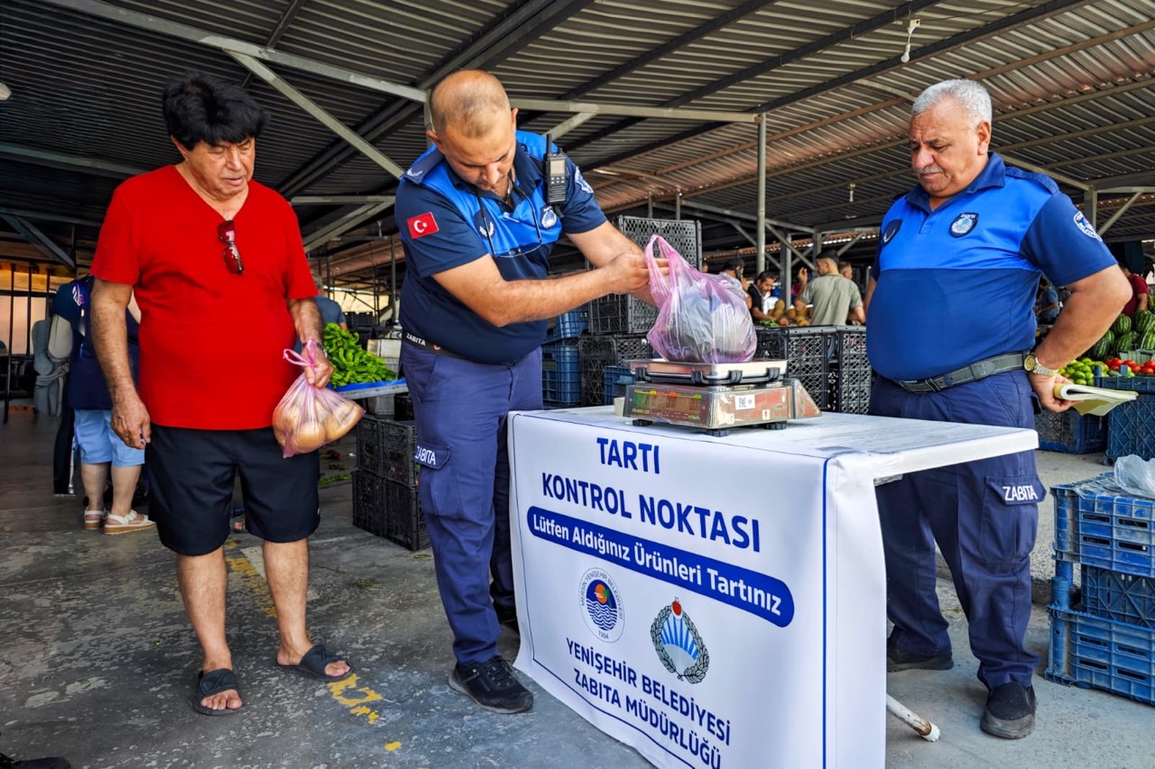 Vatandaşlar artık aldıkları ürünün gramajını kendileri de kontrol edebiliyor. Zabıta ekipleri, pazar girişine terazi yerleştirerek alışverişte şeffaflığı artırdı.
